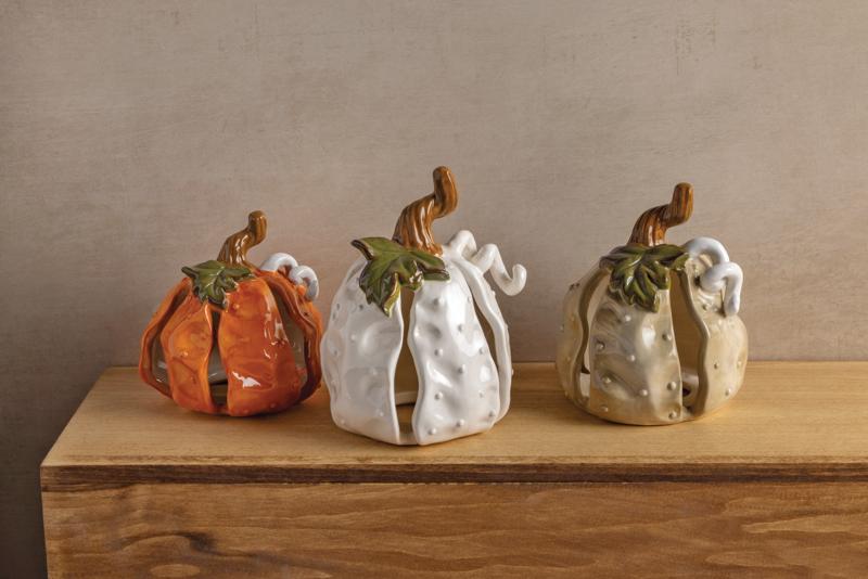 Medium Beige Stoneware Pumpkin. This elegantly crafted stoneware pumpkin features intricate in-mold dot detailing, adding a touch of sophistication to any decor. With its warm beige hue, it seamlessly complements a variety of color schemes, making it a versatile addition to your home. Measuring 5 1/2" in height and 3 1/4" in diameter, this charming piece is perfect for enhancing your seasonal displays or as a standalone decorative accent. Its durable stoneware construction ensures longevity, allowing you to enjoy its beauty year after year. Ideal for creating a cozy, inviting atmosphere, this pumpkin is a must-have for those who appreciate fine craftsmanship and timeless design.