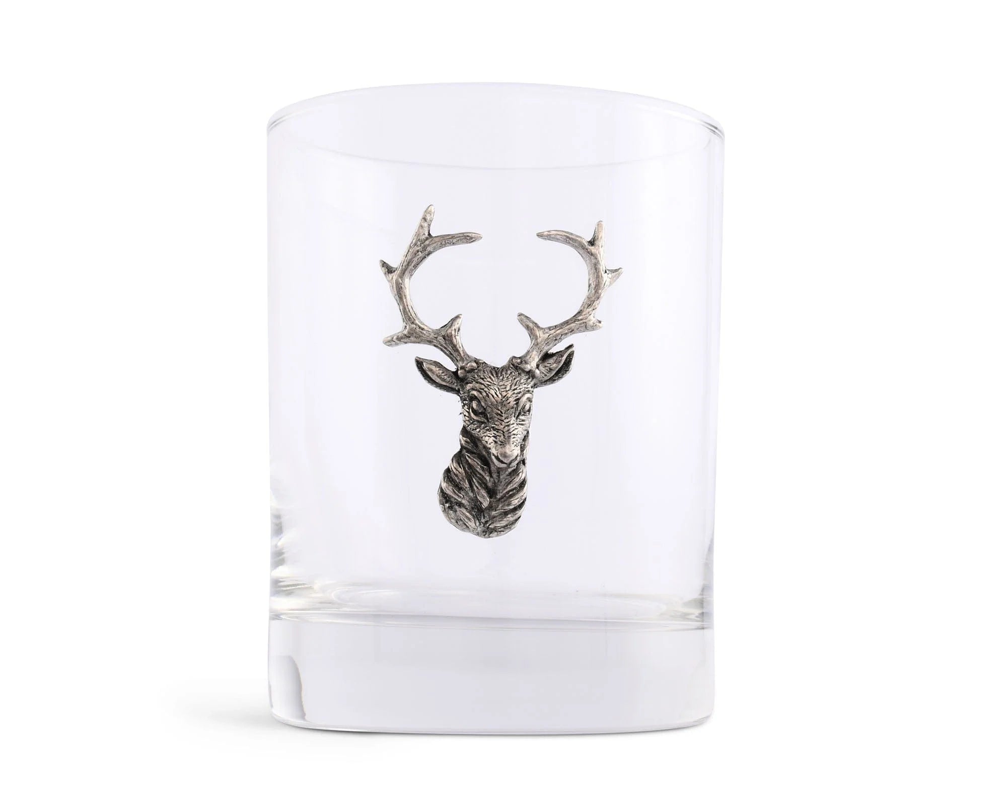 - Immerse in wilderness charm with Vagabond House's Elk Head Double Old Fashioned Glass. This ideal addition for high-end dinner parties features a realistic pewter elk head, bringing an edge of rustic luxury to your barware essentials. Meticulously crafted to exude a sense of sophistication, the generously sized 8oz glass not only showcases crystal clear perfection but also a detailed insignia that sings praises of excellent craftsmanship. Perfect for birthday surprises for outdoor enthusiasts or rustic themed cocktail parties.
