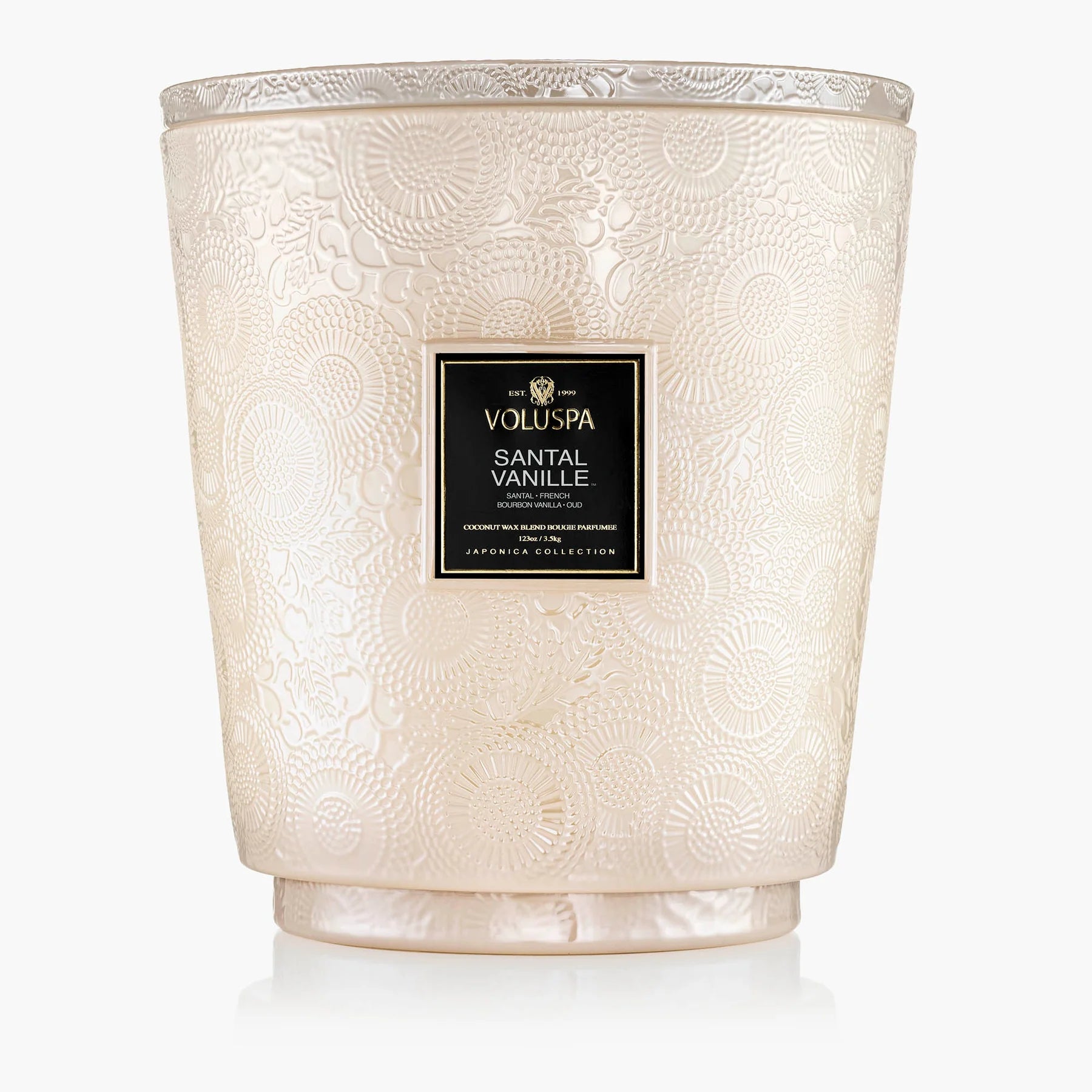 Voluspa's unique coconut wax blend is housed in a 123 oz. embossed glass vessel and topped with a matching lid that keeps the candle dust-free when not in use. Our five wicks allow you to enjoy fragrance throw for 250 hours. Our candles are handcrafted in the United States and feature our proprietary, clean-burning coconut wax blend and natural wicks. Our products are free of phthalates, parabens and sulfates and are never tested on animals. Up-cycle this best seller into a keepsake after the last burn.