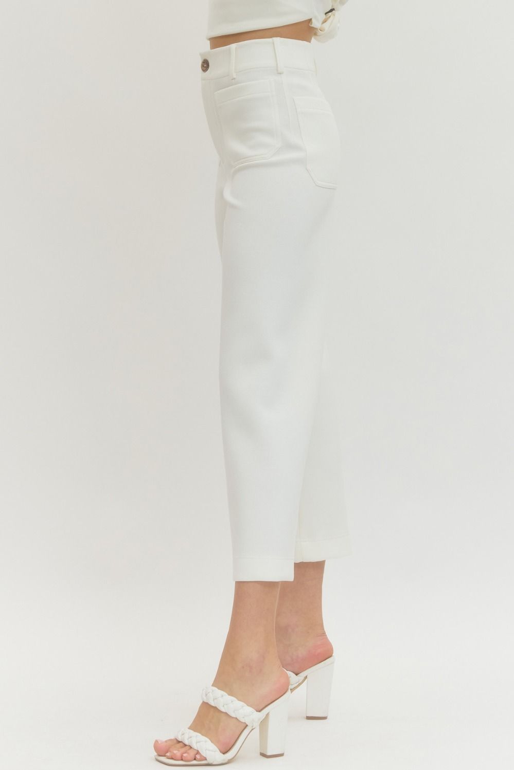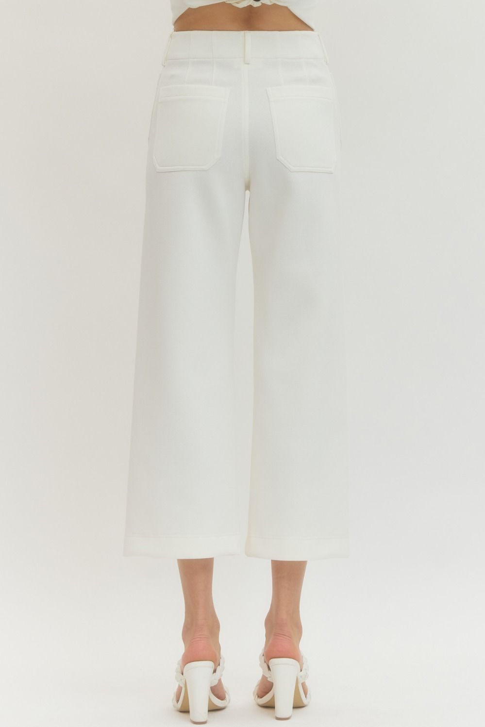 Solid knit pants featuring front and back patch pockets and zipper closure at front. Unlined. Knit. Non-sheer. Lightweight.