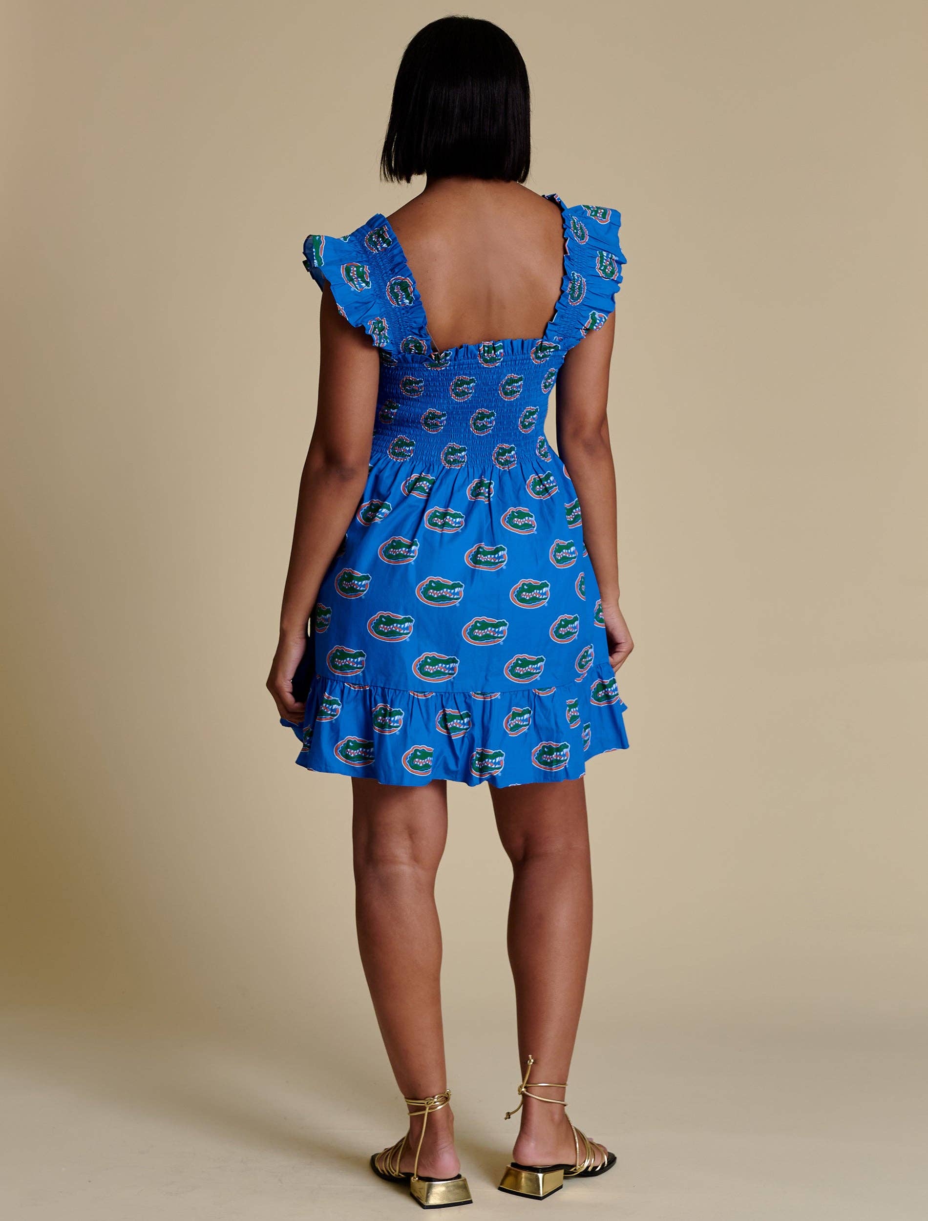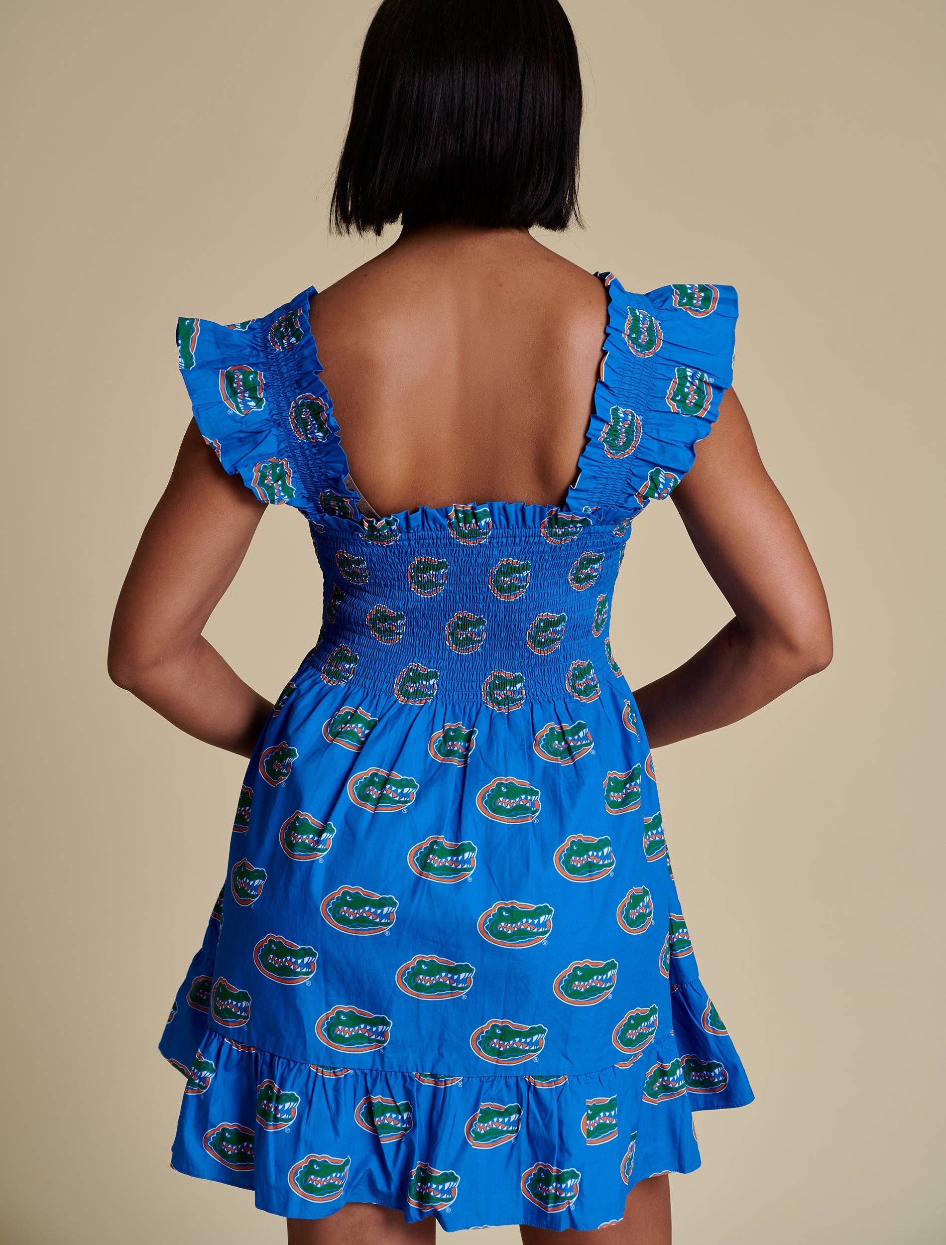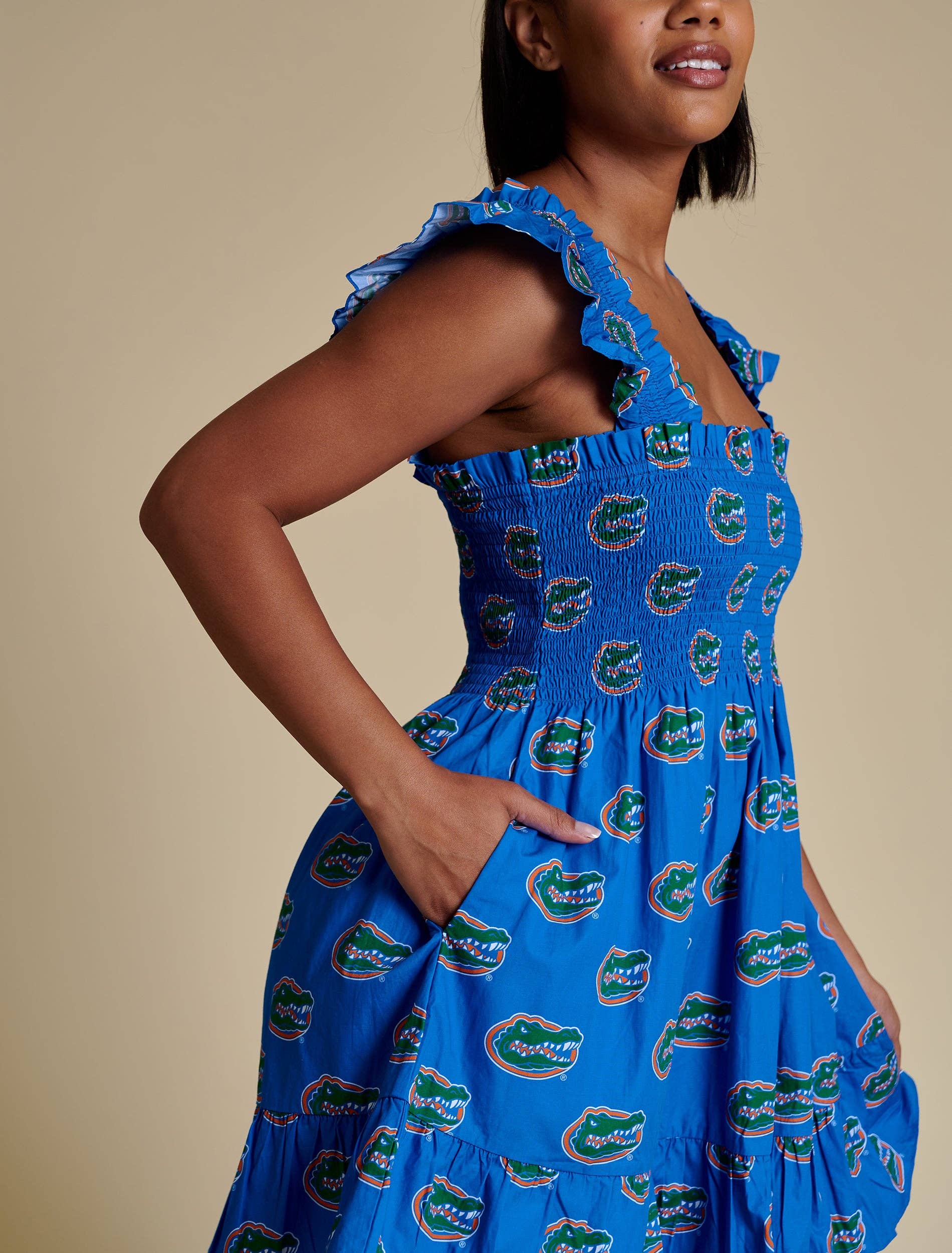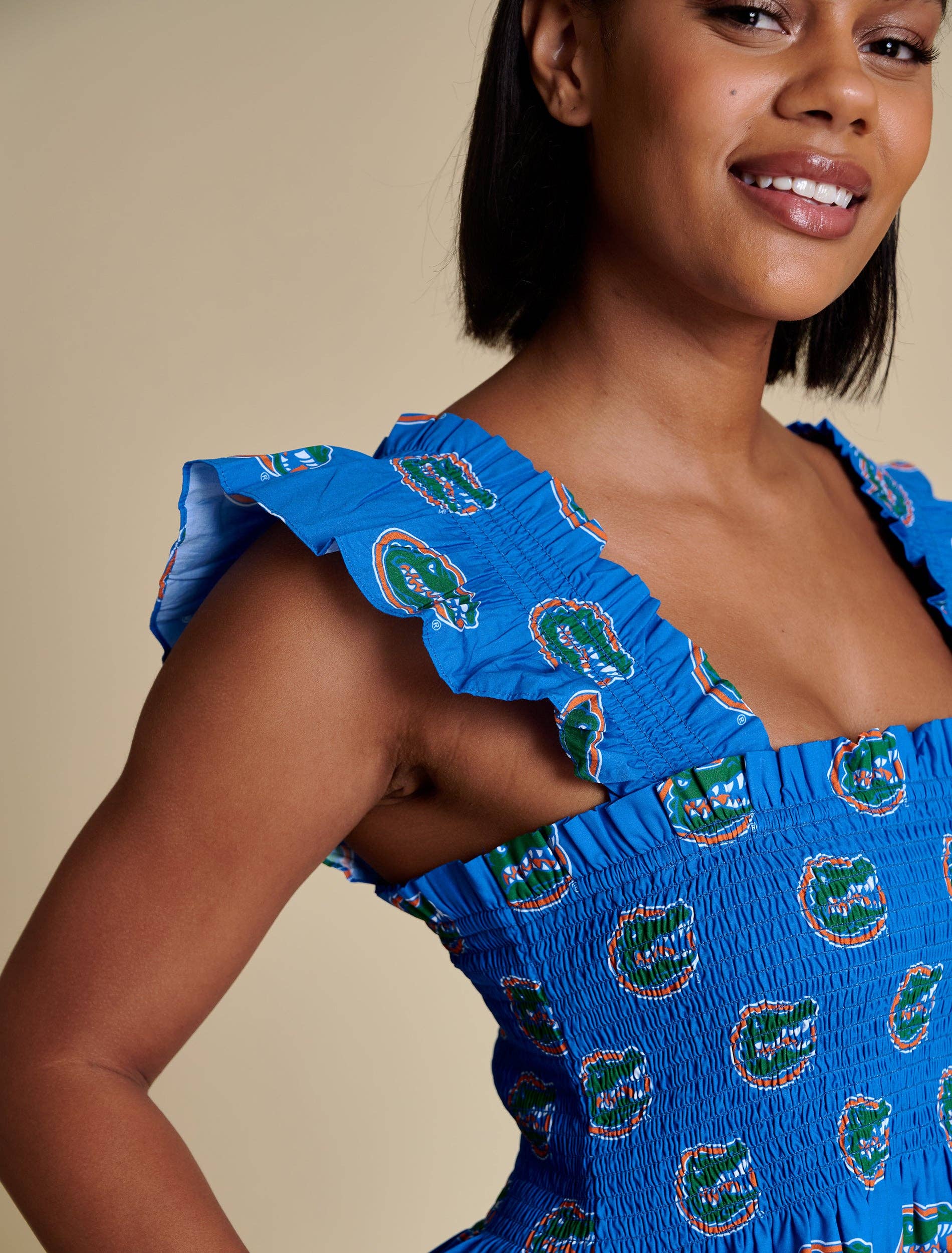 This bestselling silhouette is back with a fresh twist. Made from crisp cotton poplin, it features an allover offset team print, flattering smocked bodice, and ruffled shoulder straps — plus pockets for extra ease. We’re wearing it with strappy sandals or a western boot to keep the look playful.