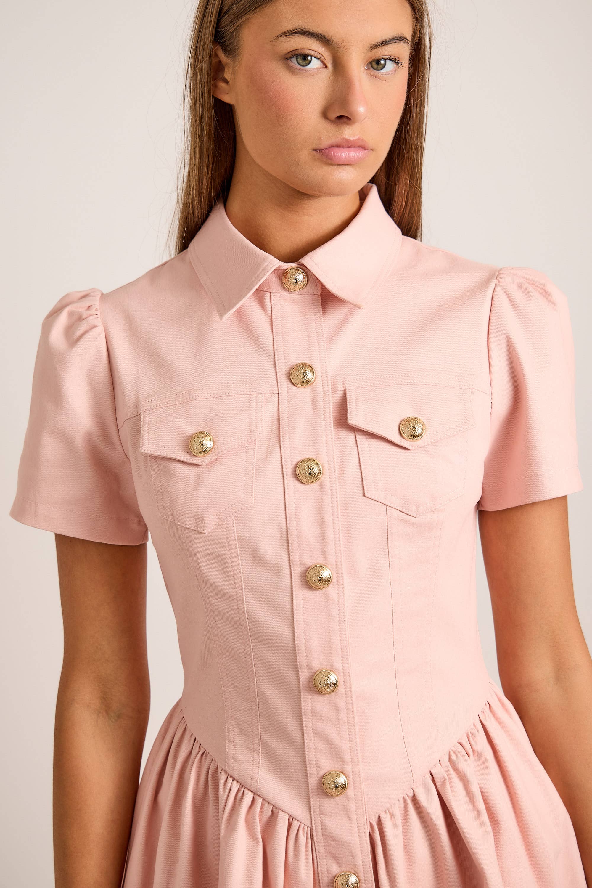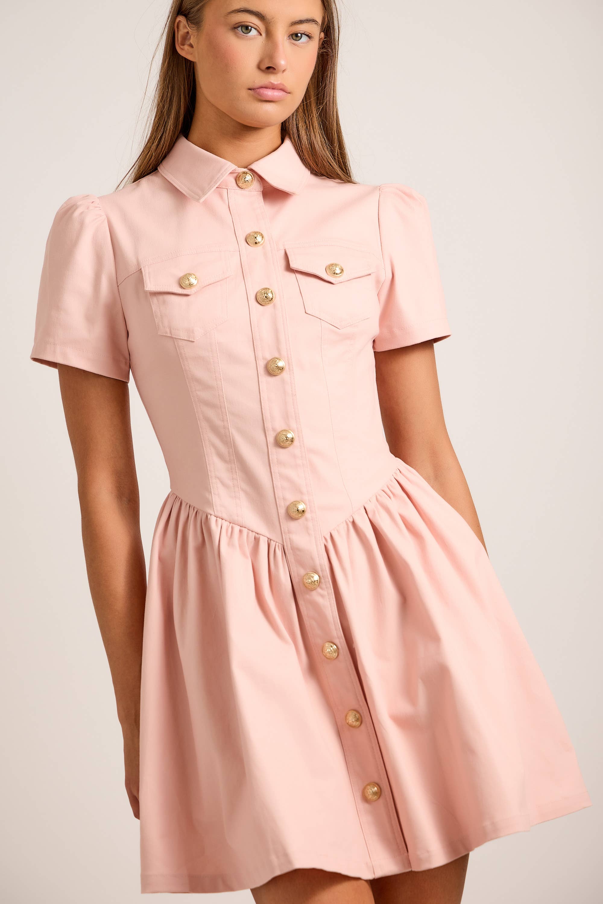 Button-down front with gold accents