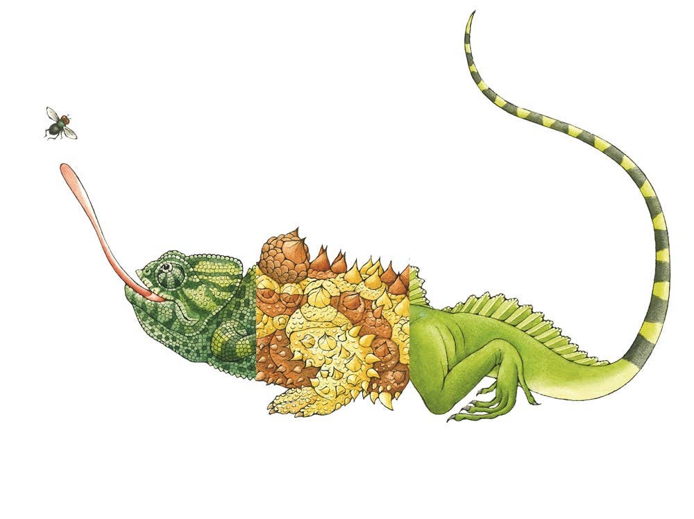Best-selling illustrator Sara Ball brings more mix-and-match fun—this time with reptiles and amphibians! In Flip-a-gator, you get to create zany combinations with the heads, bodies, and tails of ten different creatures, including a curious iguana, a creeping lizard, a croaking frog, and a slithering snake. Each flap features a fun fact about the pictured species, and inside the front cover is a chart showing the relative sizes of the reptiles and amphibians featured, from the gecko to the alligator.