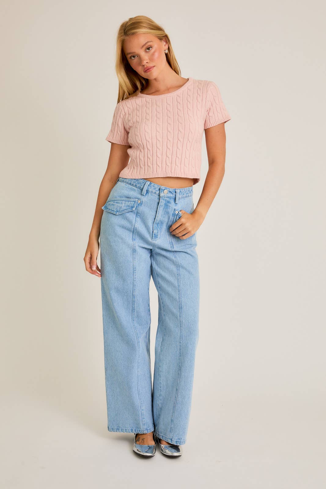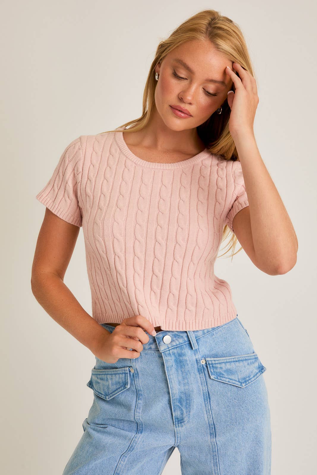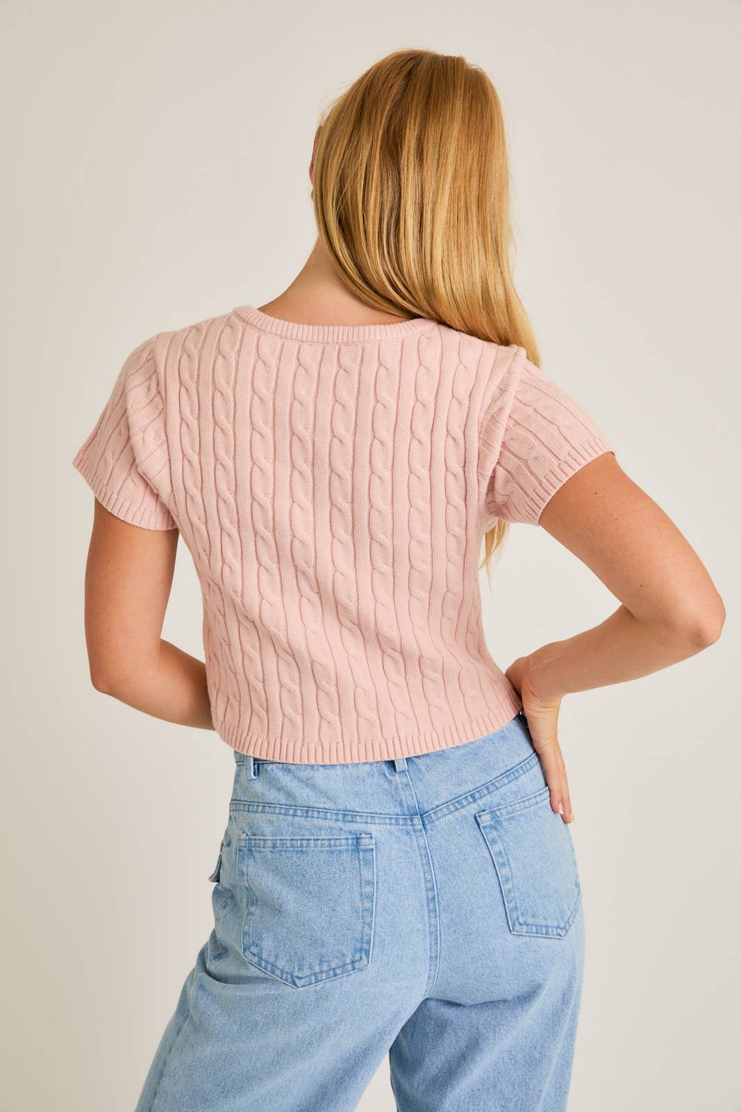 SHORT SLEEVE CABLE SWEATER TOP